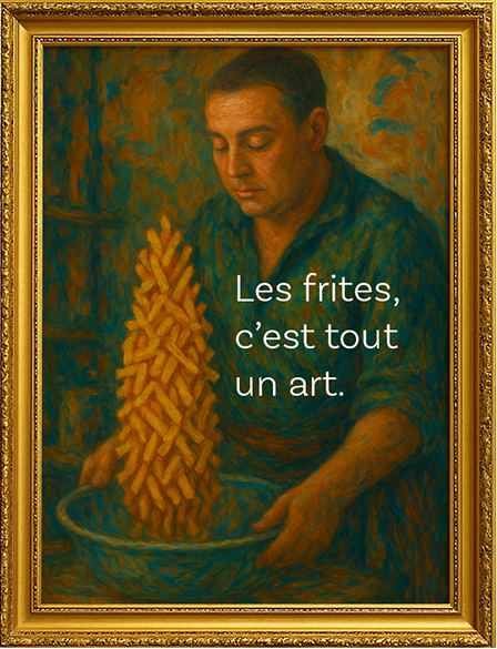 Les frites, c’est tout un art… qui nous rassemble ici ou dans ta friterie locale préférée.